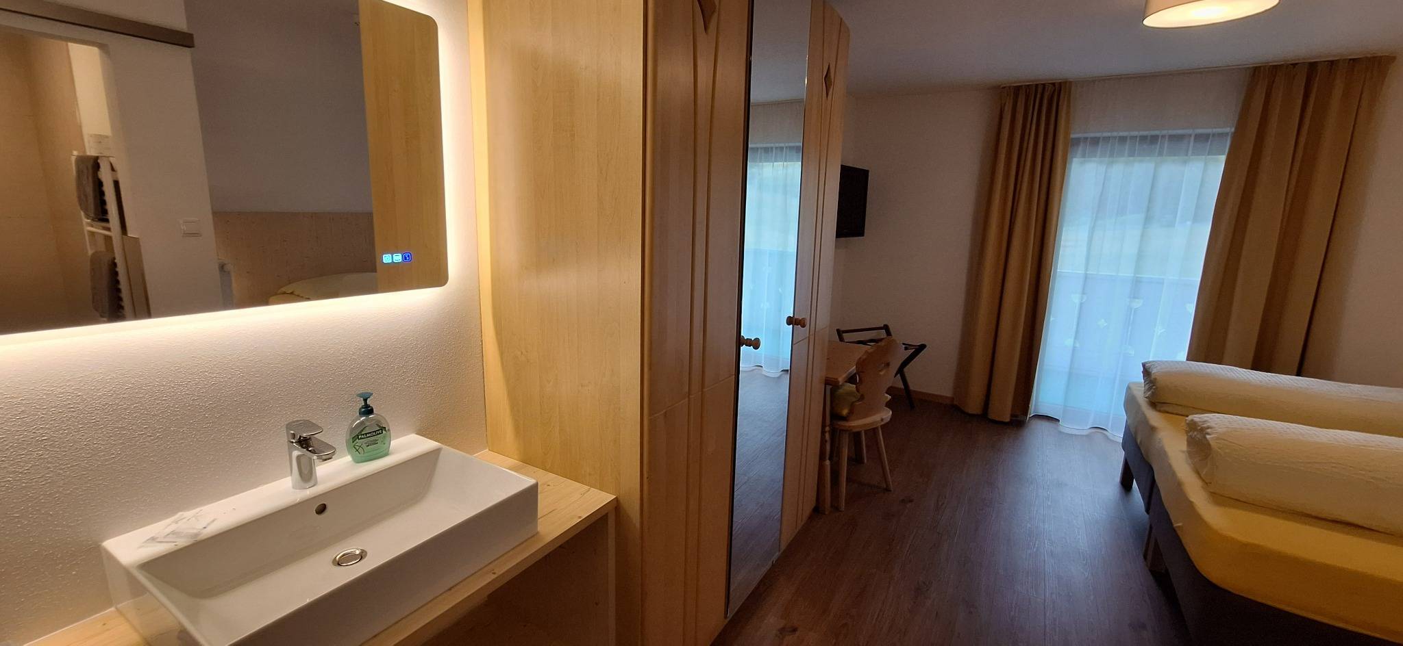 Questa camera offre un panorama mozzafiato sulle montagne circostanti: la vetta ghiacciata del monte Cevedale, su in alto le piste sciistiche di Belpiano oppure a portata di mano, il triangolo dei tre confini. La Sua camera è accogliente ed adeguatamente arredata. SENZA BIDET!