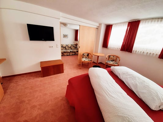 Sie suchen nach einem geräumigen Zimmer für Ihren Familienurlaub? Unsere beliebten Familienzimmer (mit getrenntem Schlafraum für die Kinder) bieten das geeignete Wohnambiente für unvergessliche Urlaubstage. Wählen Sie zwischen komfortablen Suiten oder Zwei-Zimmer-Appartements.